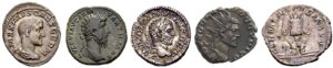 Als een keizer vond dat zijn militaire overwinning alle voorgaande overwinningen in de schaduw stelde, voegde hij de titel maximus toe. Lucius Verus wordt bijvoorbeeld Parthicus Maximus genoemd op zijn munten (‘grootste overwinnaar van de Parthen’ – zie de sestertius boven) en Gallienus Germanicus Maximus, (‘grootste overwinnaar van de Germanen’). Deze titels konden ook vaker gegeven worden en dan worden ze wel genummerd – de keerzijde van een antoninianus van Gallienus (laatste munt in het rijtje boven) heeft als omschrift ‘Germanicus Maximus V’.