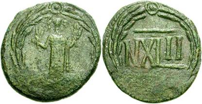 Morrison, however, does not find it reasonable that ‘old coins could have been marked with values for which there was as yet no contemporary coin’.10 She dates them to the time of the heavier emission of XLII nummi (with the standing figure of Carthage on the obverse [figure 2a]), minted c. 494-96. She identifies the countermarked coins as supplementary coinage to this ‘rather meagre issue’. After the fall of the Vandalic kingdom and the conquest of Africa by Justinian (AD 534) the countermarked coins spread to Italy, where official low-value currency was scarce due to conditions of war.11