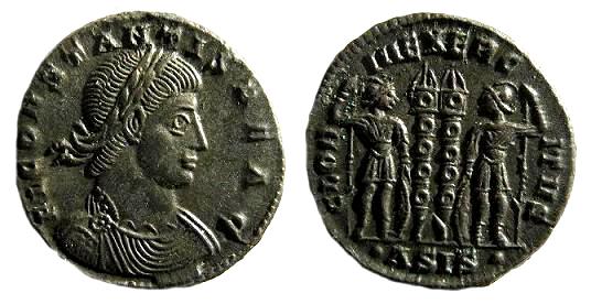 Op het eerste gezicht is dit niet een heel opmerkelijk muntje. Oké, hij is mooi van kwaliteit, maar de keerzijde met de twee soldaten is nu bepaald niet zeldzaam of bijzonder. Er zijn honderden varianten van dit type, geslagen onder Constantijn en onder zijn zoons.