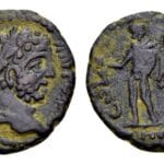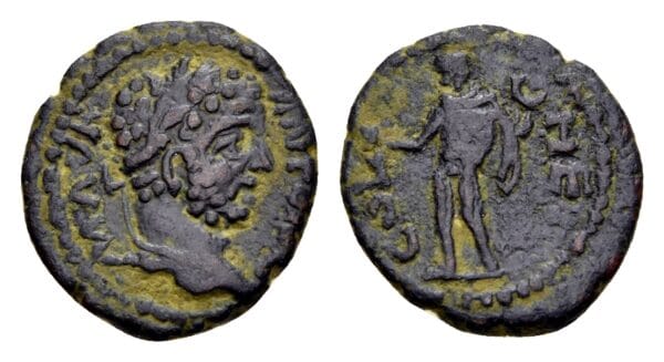 Caracalla 198-217, AE (17mm, 2,89 gram) Coelesyria, Heliopolis M AVR ANTONIN; gelauwerde buste r. COL HEL; Hermes/Mercurius staande naar links, met caduceus SNG Copenhagen 430; Lindgren/Kovacs A2162a; Zfr