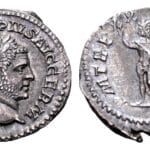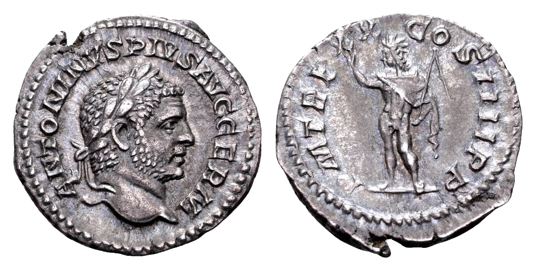 Caracalla 198-217. AR Denarius (19mm, 3.02 gram) Rome 217 ANTONINVS PIVS AVG GERM Hoofd van Caracalla, gelauwerd, naar rechts P M TR P XX COS IIII P P Sol staand naar links, rechterhand opgeheven, met zweep RIC 293d. Prachtig