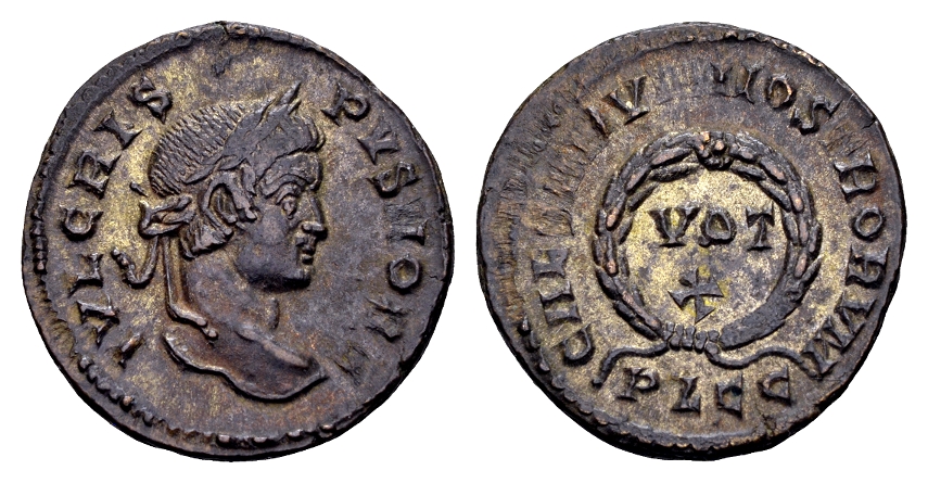Crispus Caesar 317-326. AE verzilverde Follis (19 mm, 3,37 gram) Lugdunum 323-324
