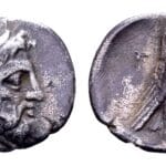 Gelauwerd hoofd van Zeus naar rechts